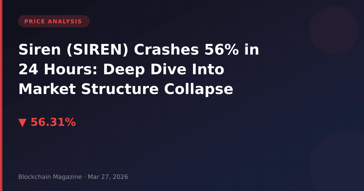 In one of the most dramatic single-day collapses we’ve observed in established DeFi protocols during 2026, Siren (SIREN) plummeted 56.3% over a 24-hour period ending March 27th, trading at $0.868 after reaching an intraday high of $2.06. This represents a staggering $803 million evaporation in market capitalization, dropping the protocol from approximately $1.44 billion to $642 million and pushing it down several positions in market cap rankings.