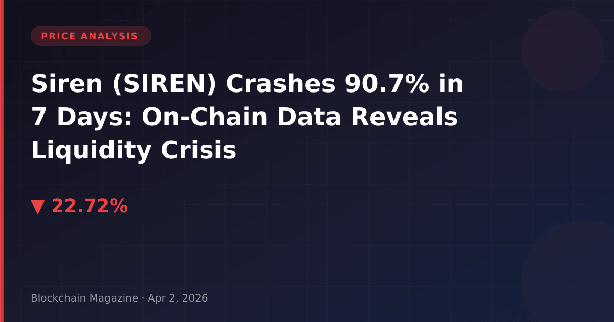 Siren (SIREN) has suffered a catastrophic decline, dropping 90.7% over the past seven days to trade at $0.1798 as of April 2, 2026. While today’s 22.7% decline catches headlines, our analysis reveals this represents the culmination of a month-long deterioration in token fundamentals that has wiped out $35.9 million in market capitalization in just 24 hours.