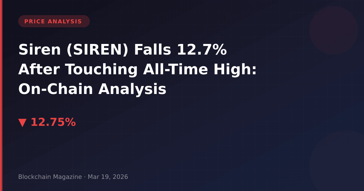 The 18.6% retracement from ATH is significant because it approaches the 20% threshold that many institutional traders use to define a correction versus a pullback. If Siren crosses into correction territory (20%+ decline from peak), we could see additional programmatic selling from risk management protocols and automated trading systems.