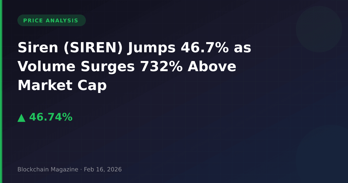 Siren (SIREN) has recorded a striking 46.7% price increase over the past 24 hours, climbing from $0.145 to $0.213 and marking one of the strongest single-day performances among top-250 cryptocurrencies. What distinguishes this rally from typical altcoin volatility is the accompanying volume profile: $27.08 million in daily trading volume against a $156.2 million market cap represents a 17.3% volume-to-market-cap ratio—significantly above the 2-5% range typically observed in established crypto assets.