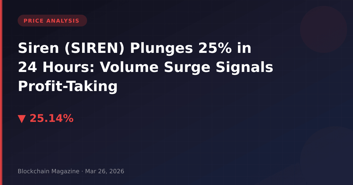 Siren (SIREN) suffered a dramatic 25.1% price decline on March 26, 2026, falling from a 24-hour high of $2.35 to $1.66. This single-day correction wiped out $408 million in market capitalization, yet the token maintains its position at rank #61 with a $1.21 billion valuation. Our analysis of on-chain metrics and market structure suggests this decline represents a technical correction following an unsustainable parabolic rally rather than fundamental deterioration.