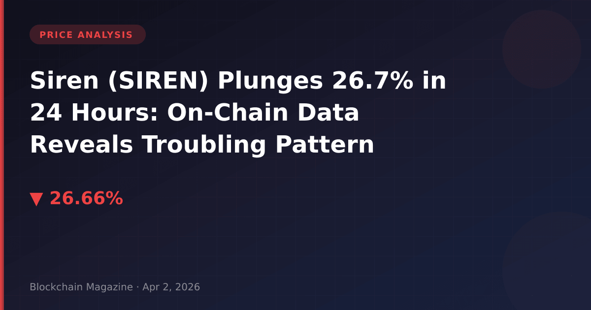 Siren (SIREN) has experienced one of the most severe drawdowns we’ve observed in the mid-cap crypto space this week, with a 26.7% price collapse in just 24 hours. More alarming than the daily decline is the broader picture: our data shows an 89.26% value destruction over the past seven days, raising critical questions about token fundamentals and market structure.