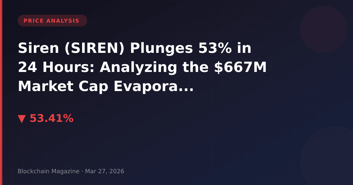 Siren (SIREN) token holders witnessed a brutal 24-hour period as the cryptocurrency plummeted 53.4%, with its price collapsing from an intraday high of $1.73 to $0.77 by March 27, 2026. More striking than the percentage decline is the absolute market capitalization destruction: $667 million evaporated in a single day, reducing SIREN’s market cap from approximately $1.21 billion to $544.5 million. This represents one of the most significant single-day corrections we’ve observed in mid-cap tokens during Q1 2026.