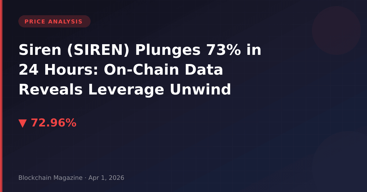 The Siren collapse serves as a reminder that parabolic price advances create unstable structures prone to violent reversals. The 14,000% rally from March 2025 to March 2026 attracted momentum traders who are now experiencing the flip side of leverage-driven markets. The volume-to-market cap ratio of 91.6% suggests this selling isn’t finished, despite the apparent exhaustion in hourly timeframes.