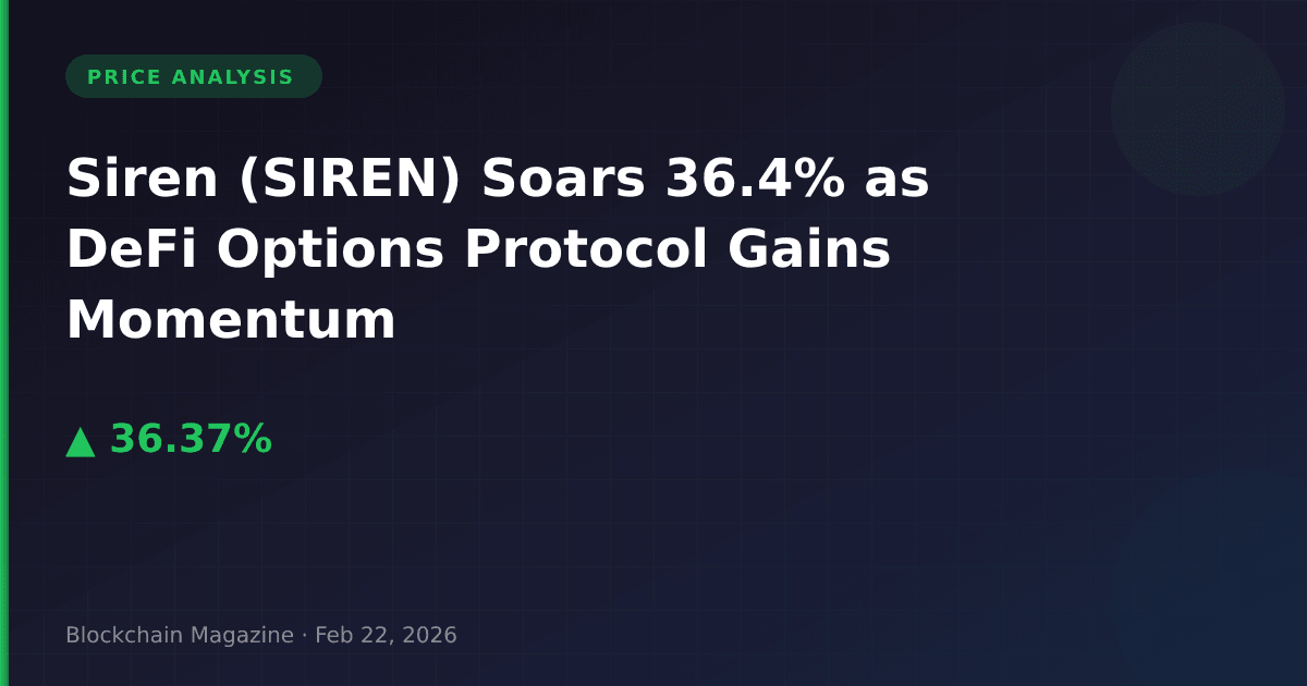Siren (SIREN) has delivered a striking 36.4% price surge over the past 24 hours, climbing from $0.210 to $0.289 as of February 22, 2026. Our analysis reveals this rally represents more than typical crypto volatility—it signals growing institutional interest in decentralized options protocols amid broader market uncertainty.