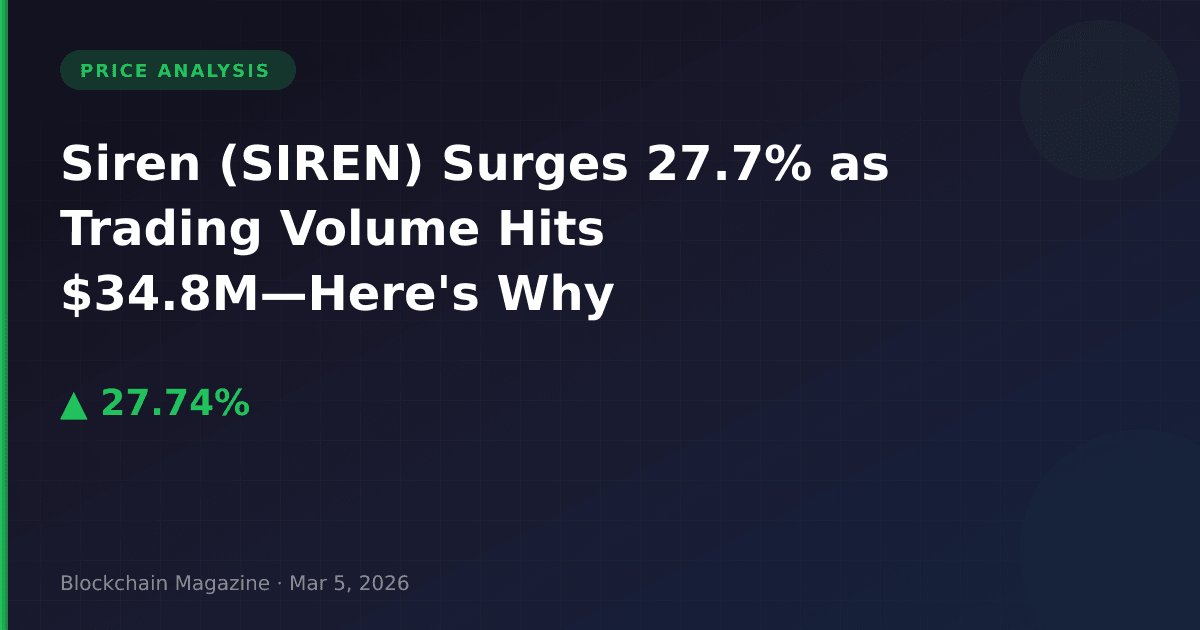 Siren (SIREN) delivered one of the most significant single-day performances in the mid-cap crypto space on March 5, 2026, posting a 27.7% gain that pushed its price to $0.487. What makes this rally particularly noteworthy isn’t just the percentage gain—it’s the sustained momentum that has driven the token up 437% over the past 30 days, transforming it from a sub-$0.10 asset into a top-120 cryptocurrency by market capitalization.