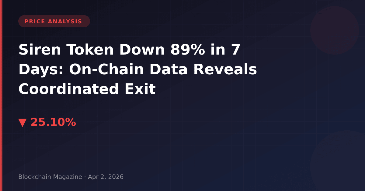 The cryptocurrency market has witnessed dramatic moves in 2026, but few match the velocity of Siren’s recent decline. Trading at $0.186 as of April 2, 2026, SIREN has plummeted 25.1% in the past 24 hours, contributing to a staggering 89.3% collapse over the past week. What makes this decline particularly noteworthy isn’t just the magnitude—it’s the on-chain data patterns suggesting this represents more than typical crypto volatility.