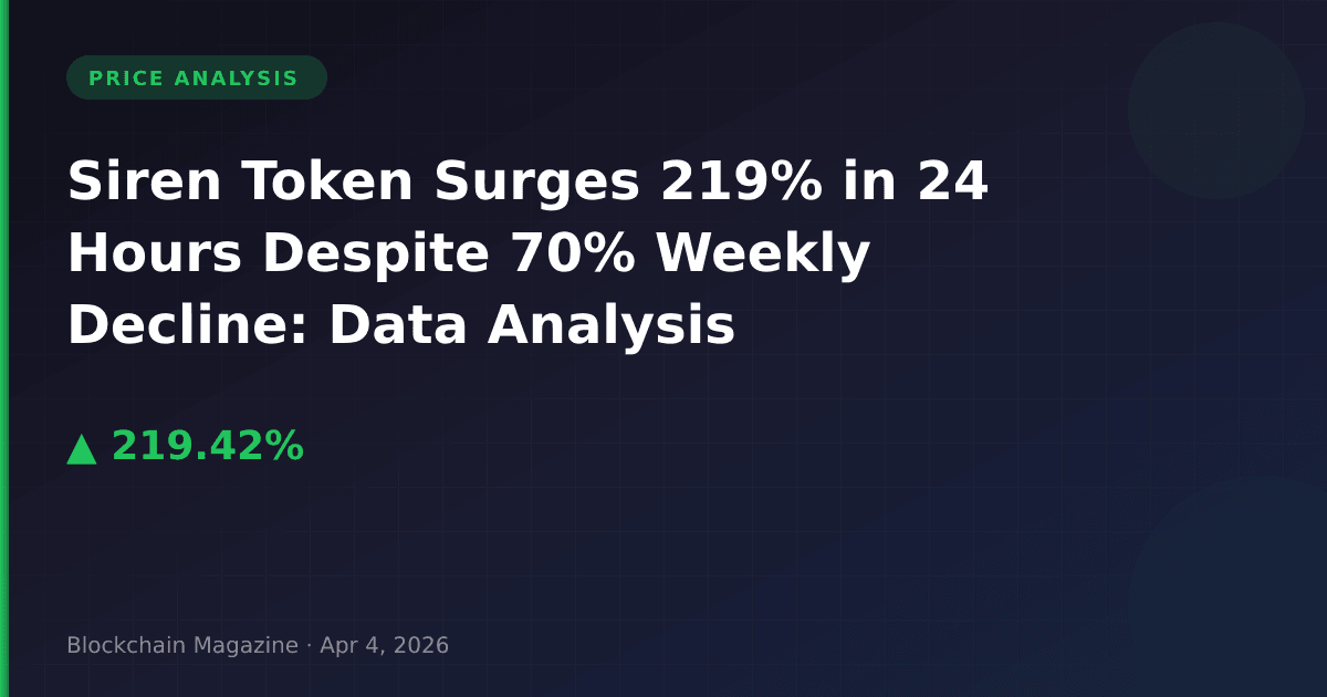Siren (SIREN) has recorded a startling 219.4% price increase over the past 24 hours, climbing from $0.13232 to $0.496511 as of April 4, 2026. However, our analysis of the broader timeframe reveals a more complex narrative that challenges surface-level interpretations of this explosive move.