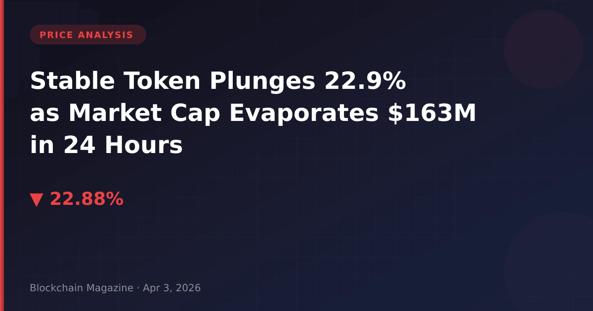 Stable token (STABLE) suffered a precipitous 22.9% decline on April 3, 2026, erasing $163 million from its market capitalization in a single trading session. What makes this drawdown particularly concerning is not just the magnitude—though a sub-$0.03 price point represents a 27% decline from its all-time high set just five weeks ago—but rather the confluence of supply dynamics and valuation metrics we’ve identified through our analysis.