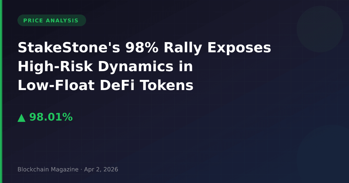StakeStone (STO) recorded a 98% price increase in the 24 hours ending April 2, 2026, reaching $0.65 after touching an intraday high of $1.71. While headlines celebrate the gains, our analysis reveals a more complex picture: a token with restricted supply dynamics experiencing volume that exceeds its entire market capitalization by 748%.