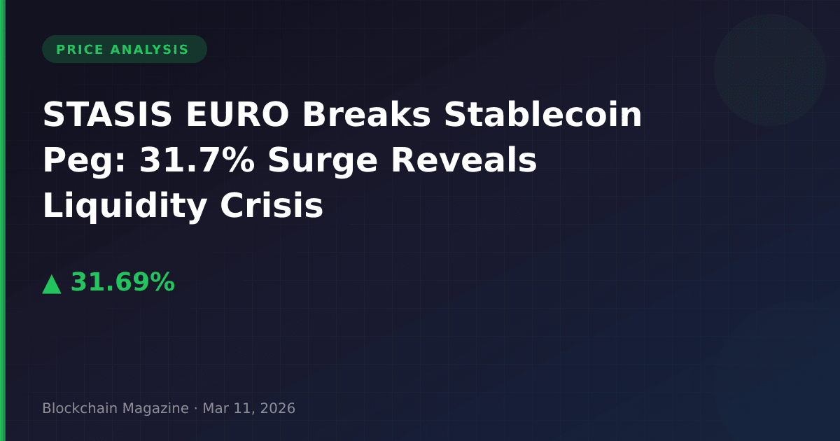 In an extraordinary deviation from its intended function, STASIS EURO (EURS) has surged 31.7% in the past 24 hours, reaching $1.23—approximately 23% above where a euro-pegged stablecoin should trade given the current EUR/USD exchange rate of roughly $1.08. This represents one of the most significant stablecoin de-pegging events we’ve observed in 2026, raising critical questions about reserve management, liquidity infrastructure, and the viability of smaller euro-backed stablecoins.
