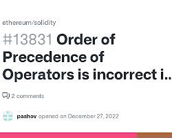 - Order of precedence of operators. This is a table that shows the order in which operators are evaluated in Solidity expressions.