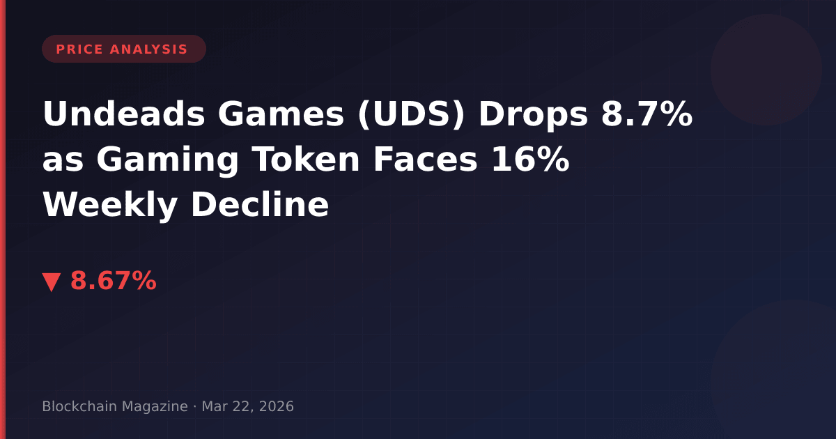 Undeads Games (UDS) recorded an 8.7% price decline over the past 24 hours, falling from a daily high of $1.67 to a current price of $1.52 as of March 22, 2026. What initially appears to be a standard market correction reveals more troubling patterns when we examine the broader data: the token has shed 16.1% over the past week, while trading volume remains concerningly low at just $294,818—suggesting limited market depth during this downturn.