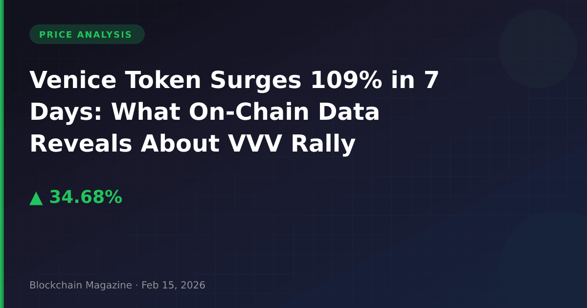 Venice Token (VVV) delivered one of the most significant single-day performances in the mid-cap crypto segment on February 15, 2026, posting a 34.7% gain that pushed its price to $3.87. More striking than the daily move, however, is the token’s 109% weekly appreciation—a performance that demands deeper analysis of the underlying market mechanics and sustainability factors.