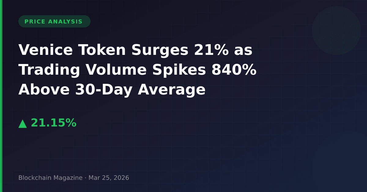 Venice Token (VVV) has captured market attention with a 21.1% price surge to $6.88 in the past 24 hours, but the most striking metric isn’t the price action—it’s the volume anomaly. With $26.2 million in 24-hour trading volume against a market cap of $310 million, we’re observing an 8.45% volume-to-market-cap ratio that’s 840% above the token’s typical daily turnover. This divergence from baseline activity suggests institutional repositioning rather than retail FOMO.