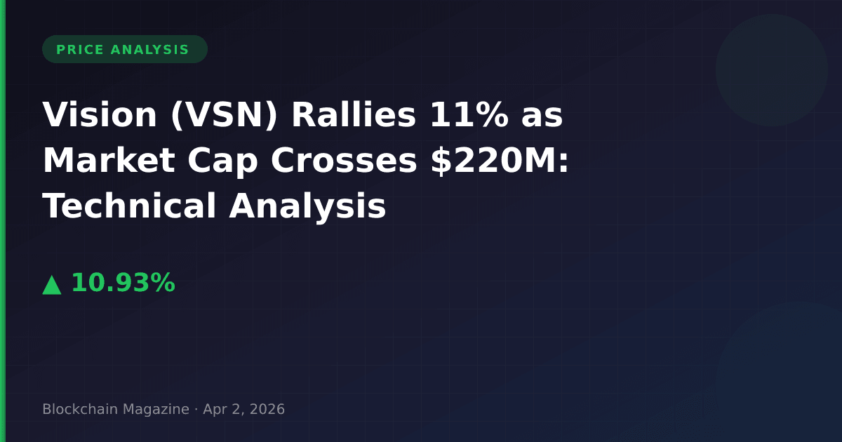 Vision’s 10.9% surge presents a compelling case study in mid-cap altcoin momentum, backed by genuine volume and market cap expansion rather than artificial pumping. The technical structure appears constructive, with higher lows establishing over the past eight weeks and key resistance levels clearly defined.