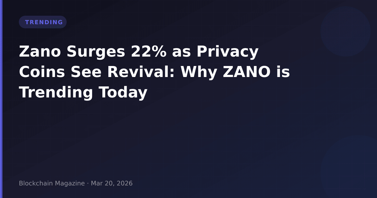 Privacy-focused cryptocurrency Zano (ZANO) has posted a striking 22% gain in the past 24 hours, outperforming major cryptocurrencies and signaling renewed interest in privacy-preserving blockchain technologies. Trading at $9.41 as of March 20, 2026, Zano’s 24-hour trading volume reached $1.87 million—a significant uptick that warrants closer examination of the forces driving this momentum.