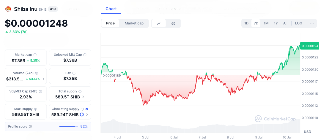 Shiba Crypto, originally launched in 2020 as a meme coin inspired by the Shiba Inu dog breed, has steadily transformed into a robust decentralised ecosystem with growing Web3 relevance. As of July 10, 2025, Shiba Inu (SHIB) is trading at approximately $0.000012, boasting a market capitalisation of over $7.35 billion . This performance stands out, especially considering the broader meme coin market saw a 30% decline in total value at the end of 2024.