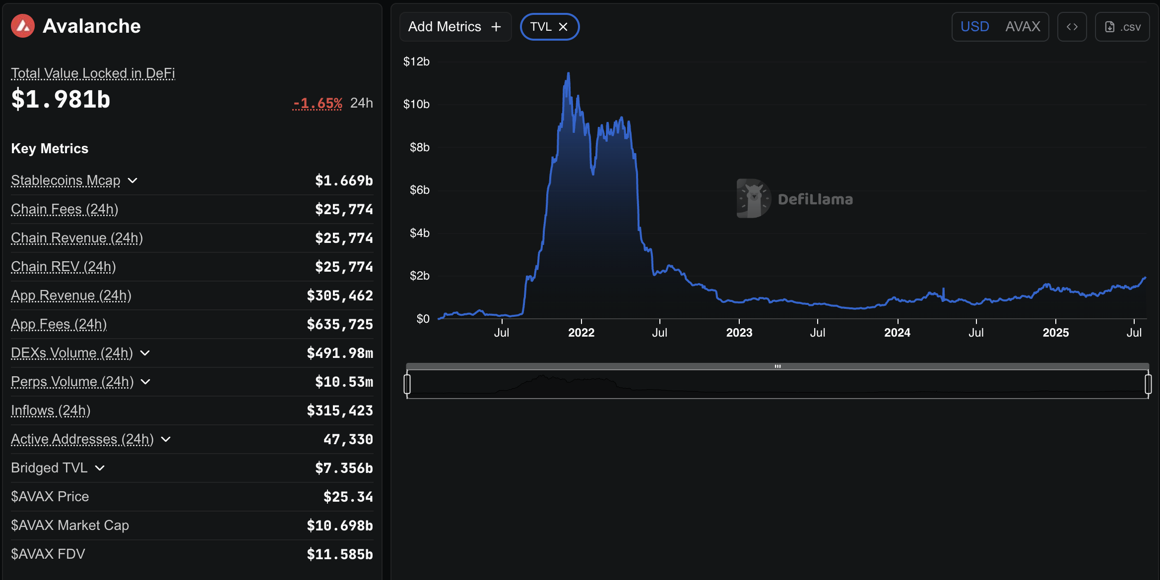 Right now, AVAX is trading around $25.35, dipping about 4.37% in the past 24 hours thanks to a shaky broader market. But despite the recent drop, many AVAX holders are staying optimistic. Why? Because the surge in real-world asset (RWA) tokenization is starting to show serious potential. With Grove bringing tokenized credit onto the Avalanche network, activity could pick up fast. That means more demand for AVAX since it’s used to pay gas fees and earn staking rewards. Speaking of staking, current yields are sitting at a healthy 8%, and if more assets come on-chain, Avalanche’s total value locked (TVL) could climb significantly. Historically, when TVL rises, AVAX prices tend to follow.