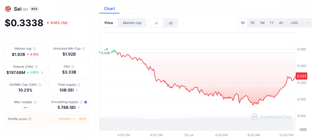 As of July 29, 2025, SEI trades around $0.32, with a $1.92 billion market cap and over $190 million in 24-hour trading volume. - Should you buy Sei during this dip?