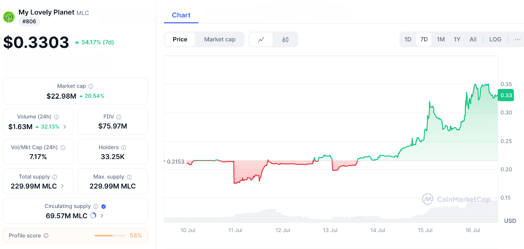 At the heart of this eco-gaming universe is the MLC token (My Lovely Coin). You earn MLC tokens by completing green missions, and you can use them to unlock new levels, buy in-game items, or even trade them on exchanges like Gate.io, KCEX, and MEXC. As of now, the token has a 24-hour trading volume of $ 1.63 Million, which recently spiked by 155.40% . Not bad for saving the planet while playing a game!